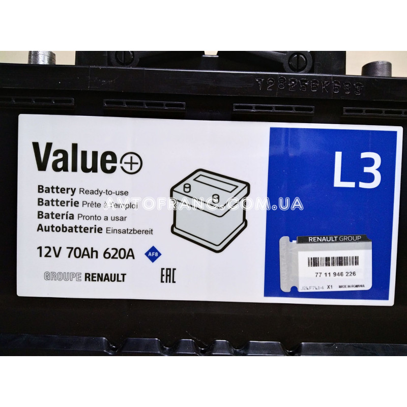 Акумуляторна батарея 70 Ah - 620 A VALUE+ 7711949805 це друга лінійка запчастин та витратних матеріалів для технічного обслуговування автомобілів Renault пост гарантійного парку. Новий бренд – старі переваги. Оригінальний номер: 7711238598, 7711947965.