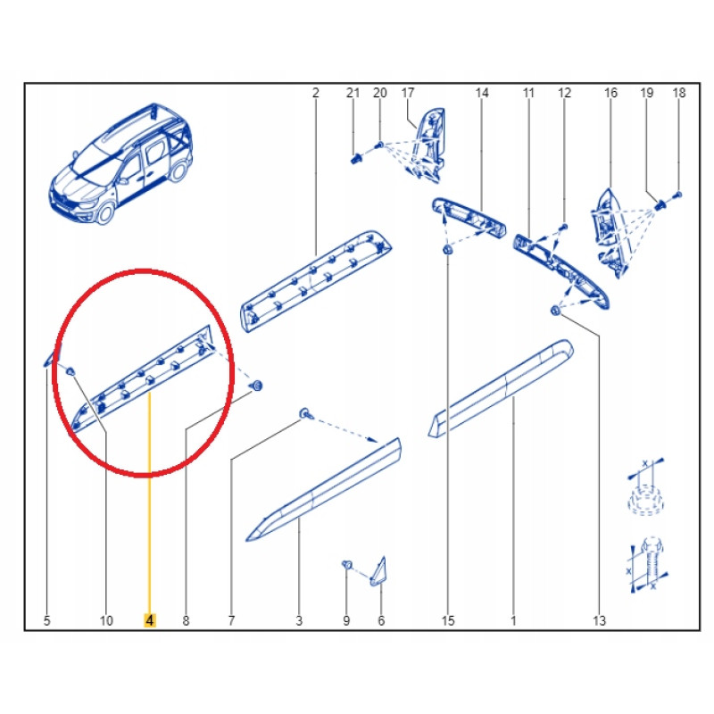Молдинг передній правий Renault Express (2021-...) Оригінал 801867113R від оригінального виробника Renault. Зроблений з якісного матеріалу. Підходить на автомобілі: Renault Express (2021-...) року випуску. Оригінальний номер: 808775109R.