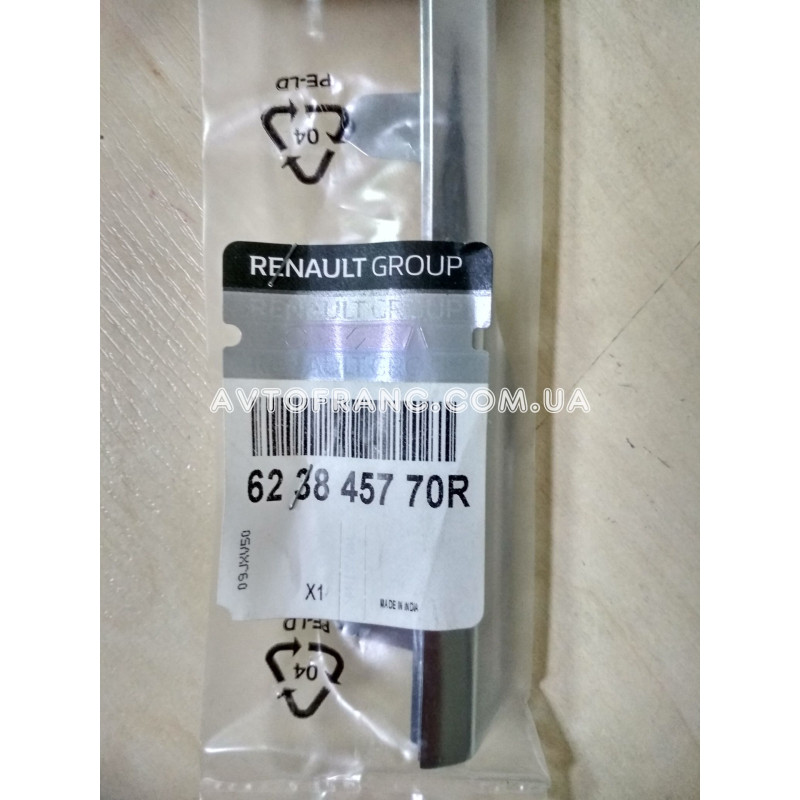 Накладка решітки (хром) верхня ліва Renault Duster 2 (2018-...) Оригінал 623845770R від заводу виробника Renault, виготовлена з високоякісного пластику, хромована. Підходить на автомобілі Renault Duster 2 (2018-...) року випуску. Сторона встановлення: зверху ліворуч. Оригінальний номер: 623845770R.