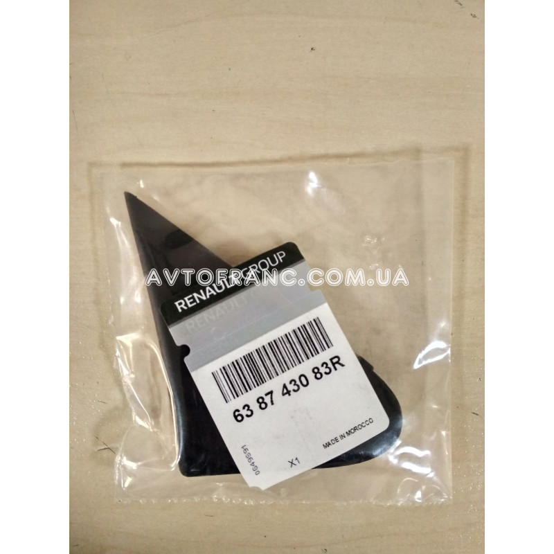 Накладка крила права Renault Lodgy (2013-...) Оригінал 638743083R від заводу виробника Renault, виготовлена з високоякісного пластику. Підходить на автомобілі: Renault Dokker (2013-...), Renault Lodgy (2013-...) року випуску. Оригінальний номер: 638743083R.
