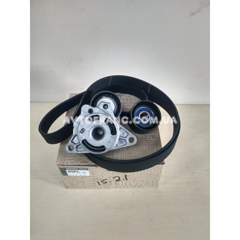 Комплект навісного обладнання на Renault Master 2 (1998-2010) оригінал 7701475193 (ремінь 7PK1795 + обвідний ролик + ролик з натягувачем) Встановлюється на автомобілі з двигунами: